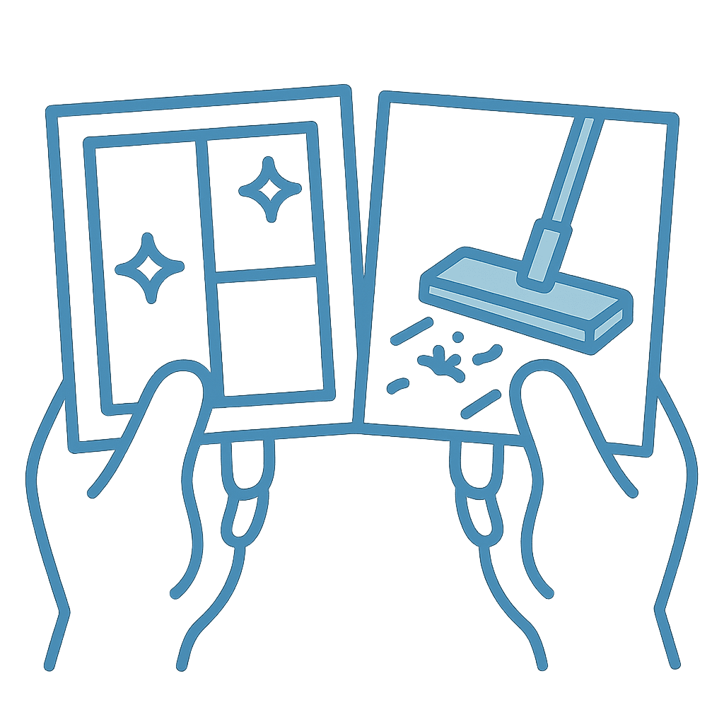 作業後は清掃箇所を最終チェック。必要に応じて写真でビフォーアフターをご確認いただきながら、仕上がりにご納得いただける状態で完了いたします。